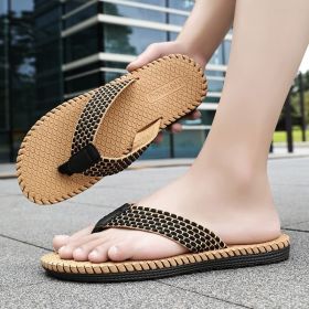 Men's new summer fashion drag classic woven flip-flops all comfortable flip-flops (Color: Black, size: 41)