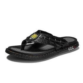 Men's new summer fashion drag classic woven flip-flops all comfortable flip-flops (Color: Black, size: 43)