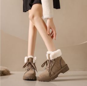 Women's new winter cold sticky light snow boots plus warm fashion women's Martin boots ankle boots (Color: Khaki, size: 37)