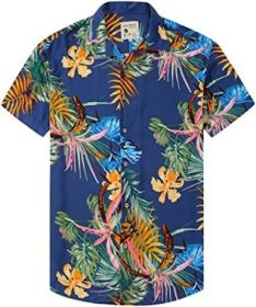 Men's Fashion Printed Shirts Casual Trendy T-Shirts Short Sleeve Lapel Hawaiian Style Shirts (Color: Navy blue-XXL)