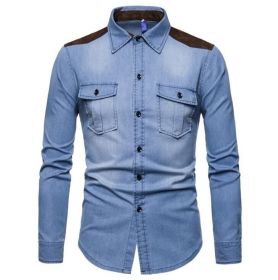Men's Denim Shirt Button Down Long Sleeve Work Shirt (Color: Blue, size: L)