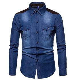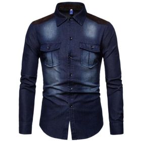 Men's Denim Shirt Button Down Long Sleeve Work Shirt (Color: Dark Blue, size: M)