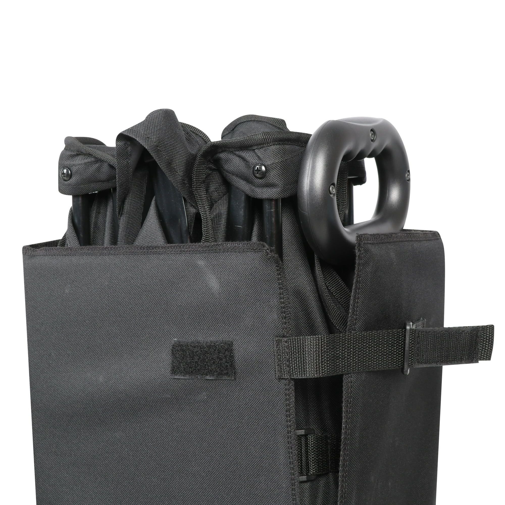 2.Built with a durable steel frame and double layer polyester fabric, it can handle up to 225 pounds. You can easily guide your load with an ergonomic handle that telescopes to where you need it.