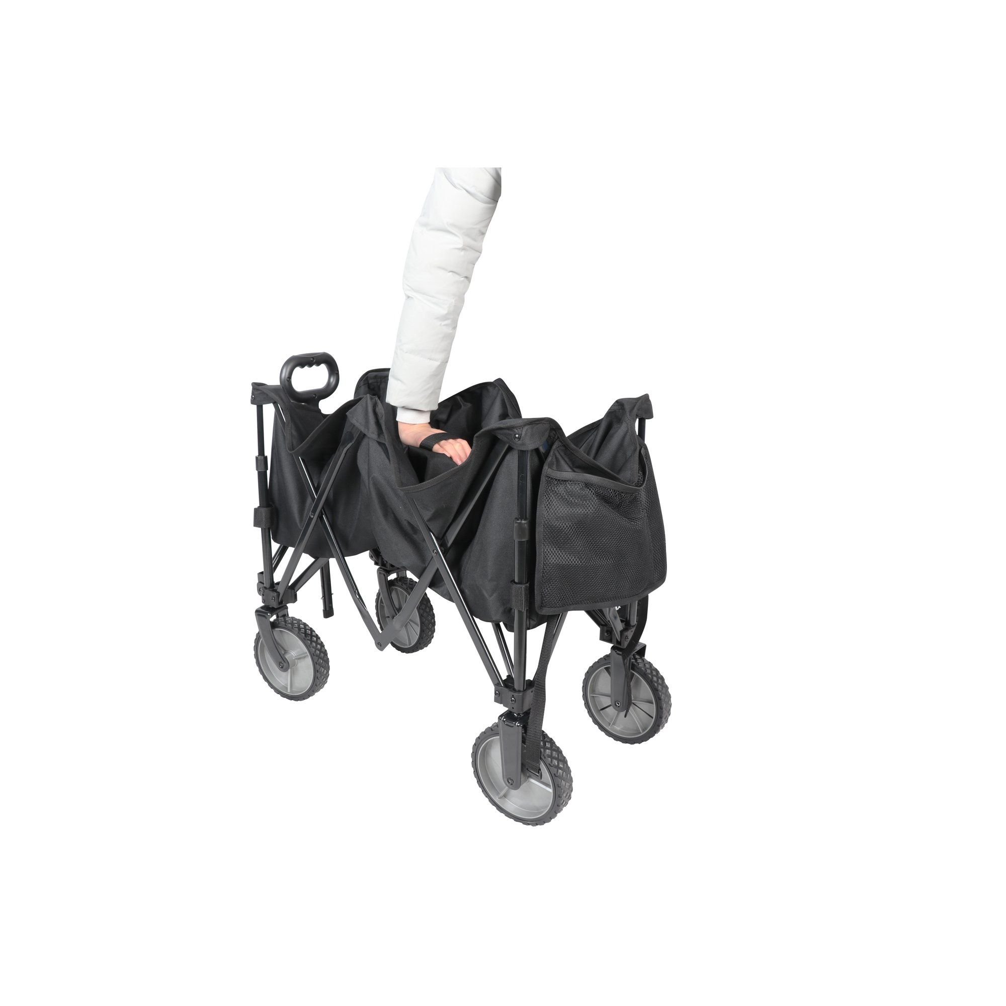 3.And when the job's done, the whole wagon folds down to a compact size and into a travel sleeve that can also be used as a supportive insert for the wagon bed when in use. It'll fit into your car trunk with plenty of room to spare.