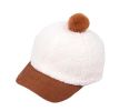 Kids Winter Lamb Cashmere Baseball Cap Toddler Pom Pom Hat; White