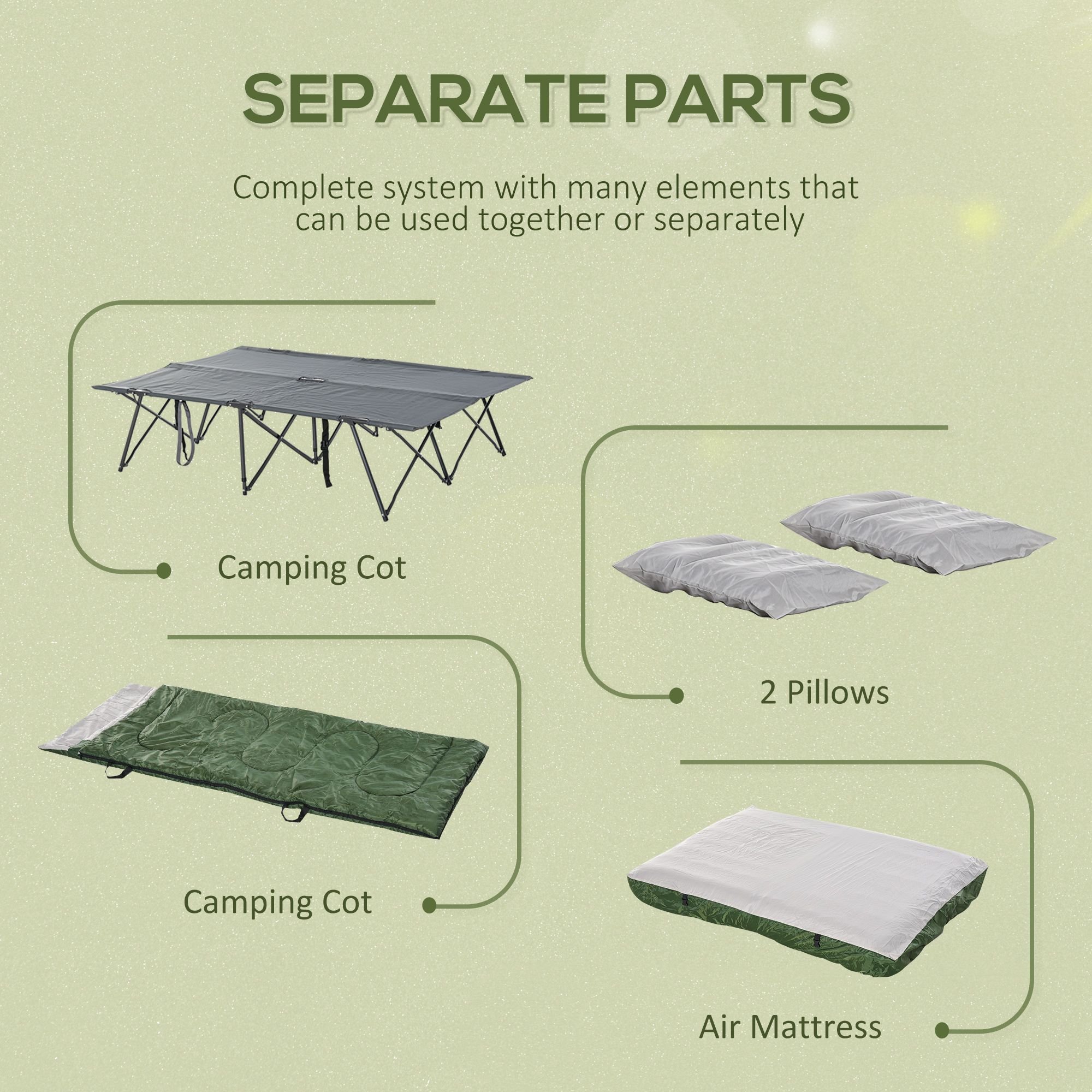 Outsunny 2-Person Folding Camping Cot Portable Outdoor Bed Set with Sleeping Bag, Inflatable Air Mattress, Comfort Pillows and Carry Bag