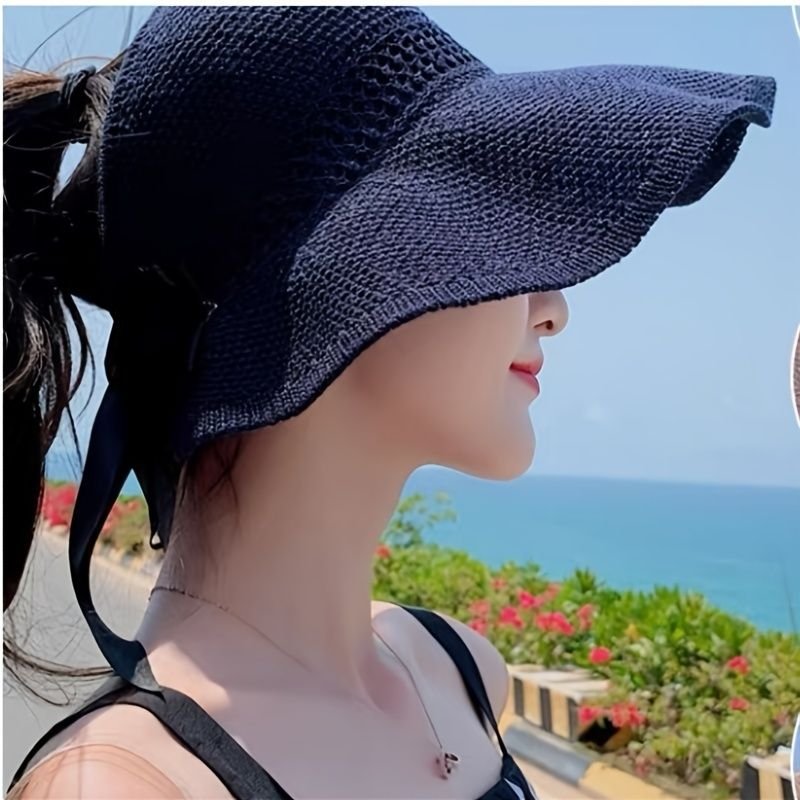 Wide Brim Sun Visor Crochet Picnic Hat Beach UV Protection Scallop Cap For Outdoor; Women's Hat & Caps
