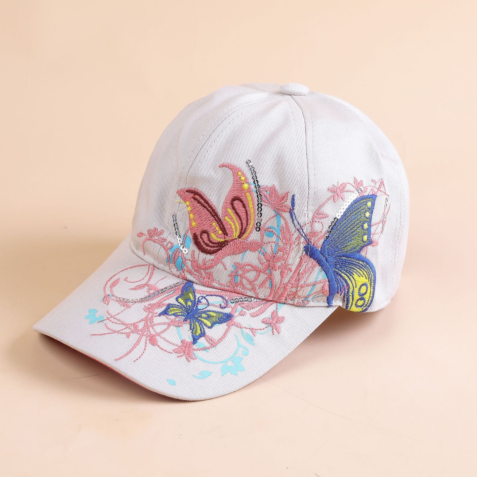 Korean version of the sequin embroidered baseball cap new butterfly embroidered duck tongue tide hat women's hat sunscreen sun hat