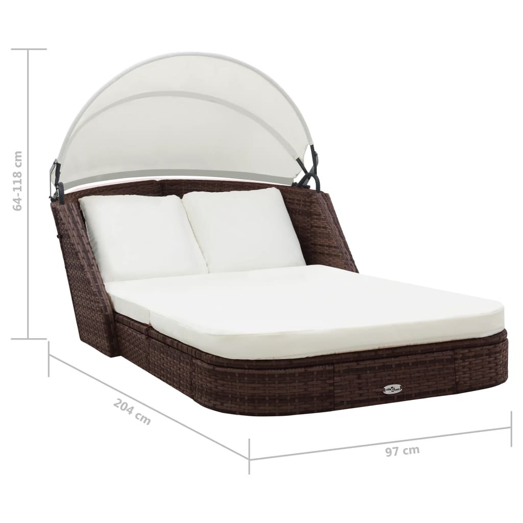 vidaXL Sun Lounger with Canopy Poly Rattan Brown