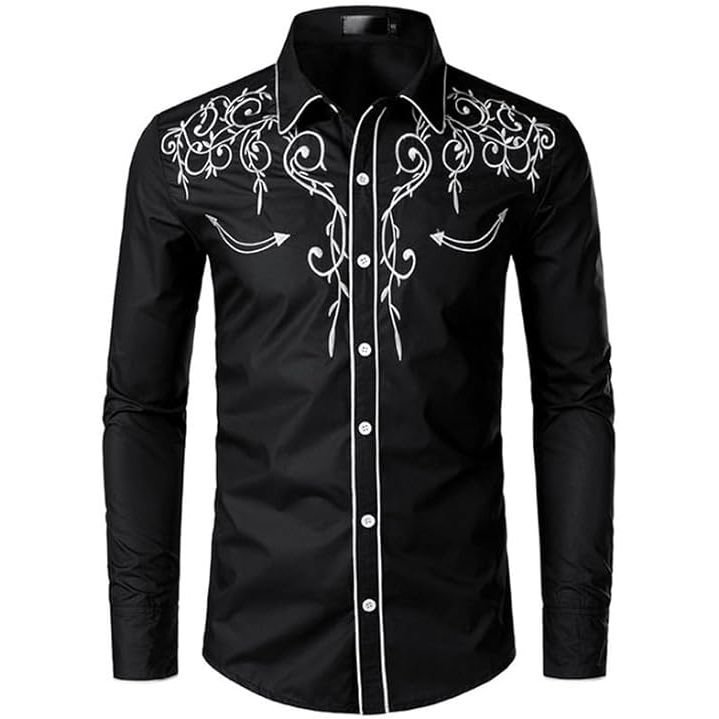 [Note]: Unveil sophistication with our men's western cowboy embroidered shirt. This package features 1 exquisite shirt, perfect for parties and events.For this casual button down slim fit embroidered shirt, please refer to the size chart carefully. If you have any questions before and after sales, please feel free to contact us, we will try our best to help you.