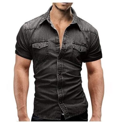 Men's Button Down Shirts Short Sleeve Denim Shirt