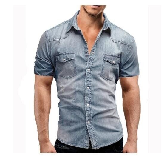 Home > Men's Button Down Shirts Short Sleeve Denim Shirt