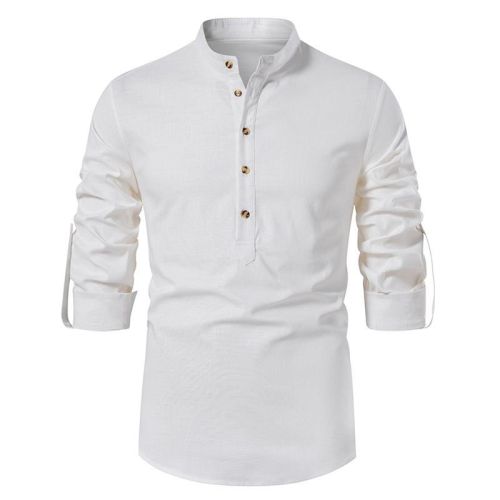 Home > Men's Stand Collar Cotton Linen Long Sleeve Shirt