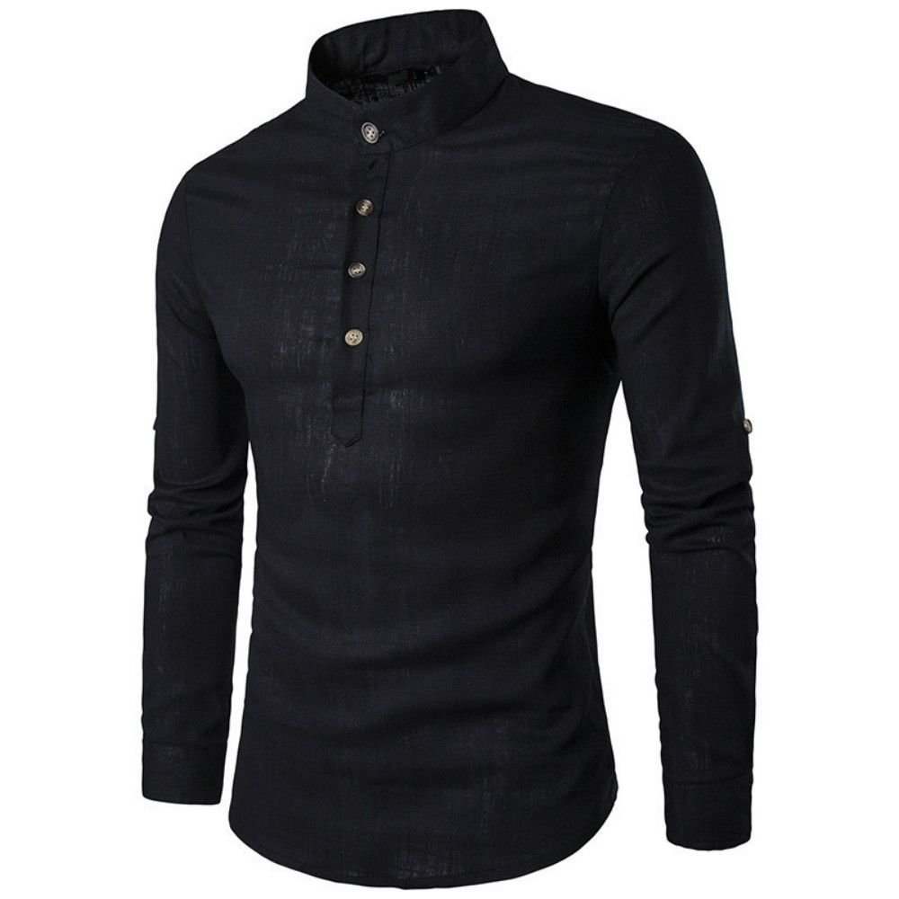 Men's Henley Shirt Mandarin Collar Long Sleeve Loose Fit Linen Shirts
