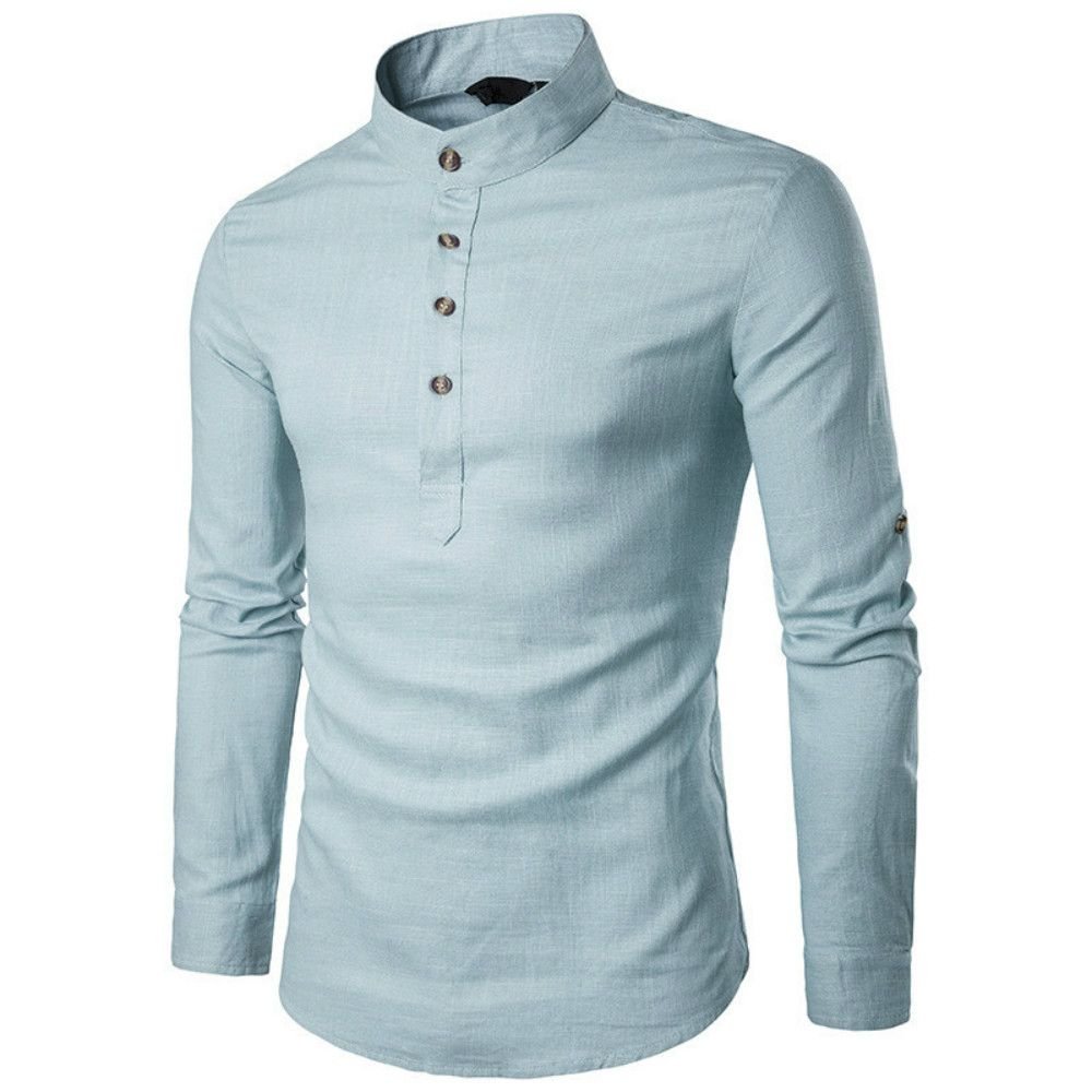 Men's Henley Shirt Mandarin Collar Long Sleeve Loose Fit Linen Shirts