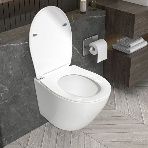 5.The wall hung toilet ultra-thin cove is high hardness, strong reliability and durable , coupled with a soft-closing mechanism that ensures a serene and elegant bathroom environment, providing both longevity and tranquility.