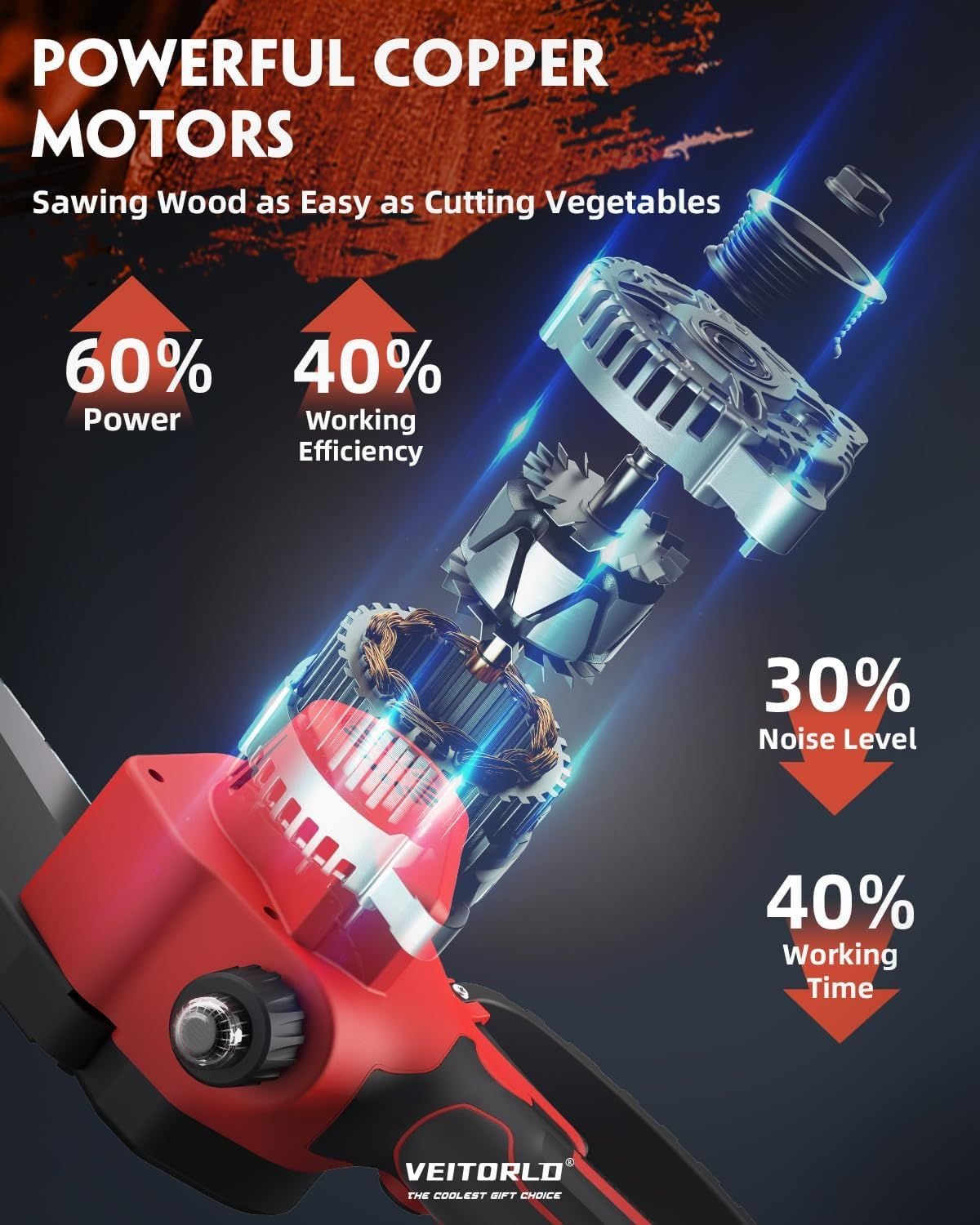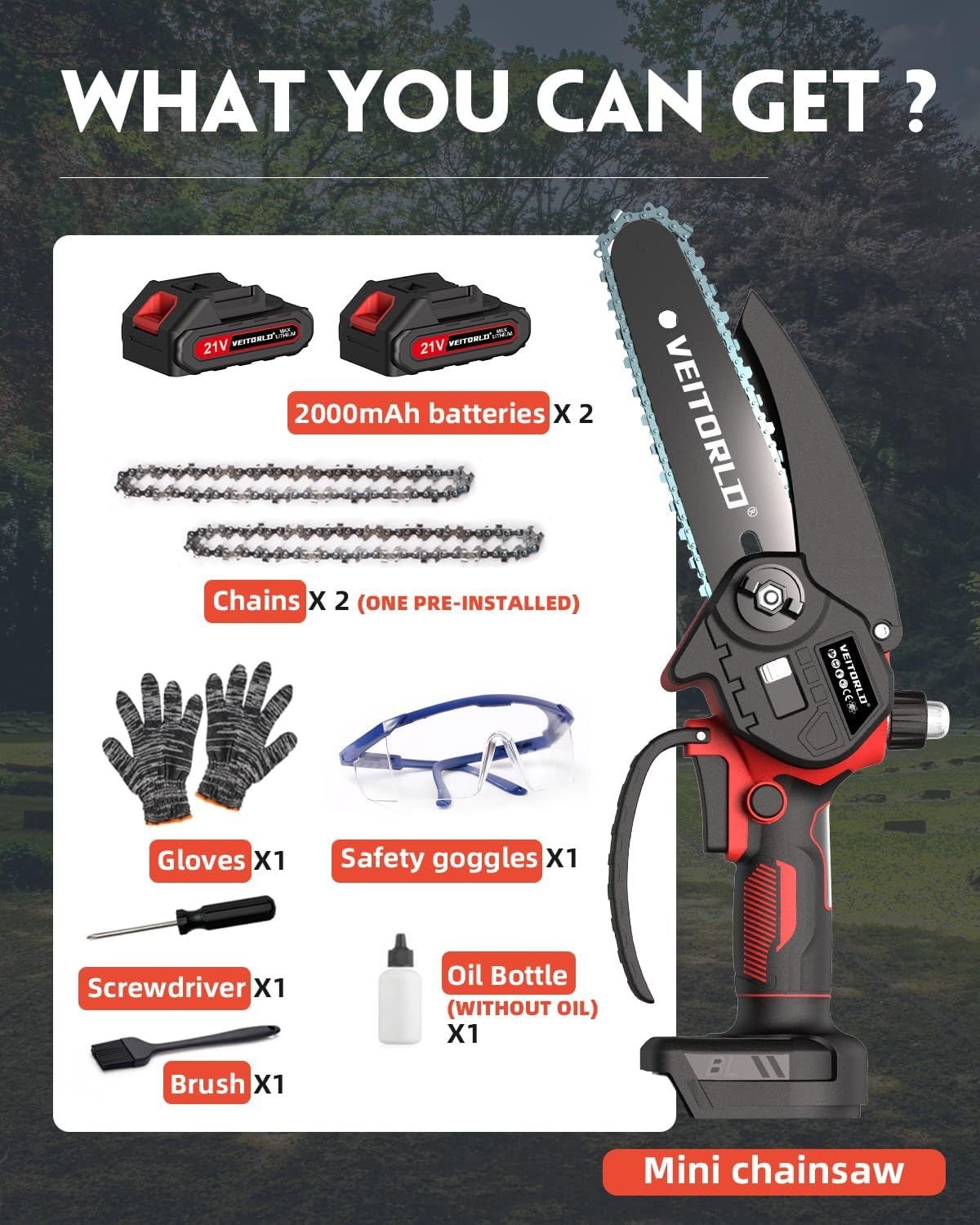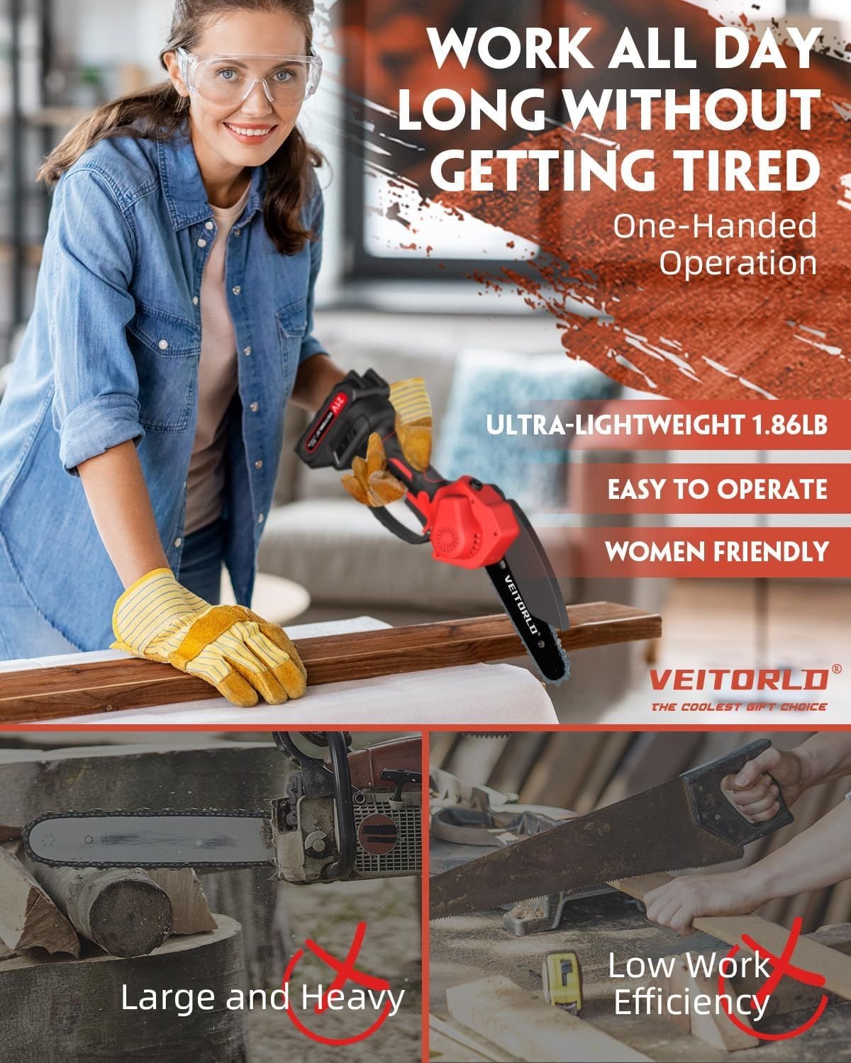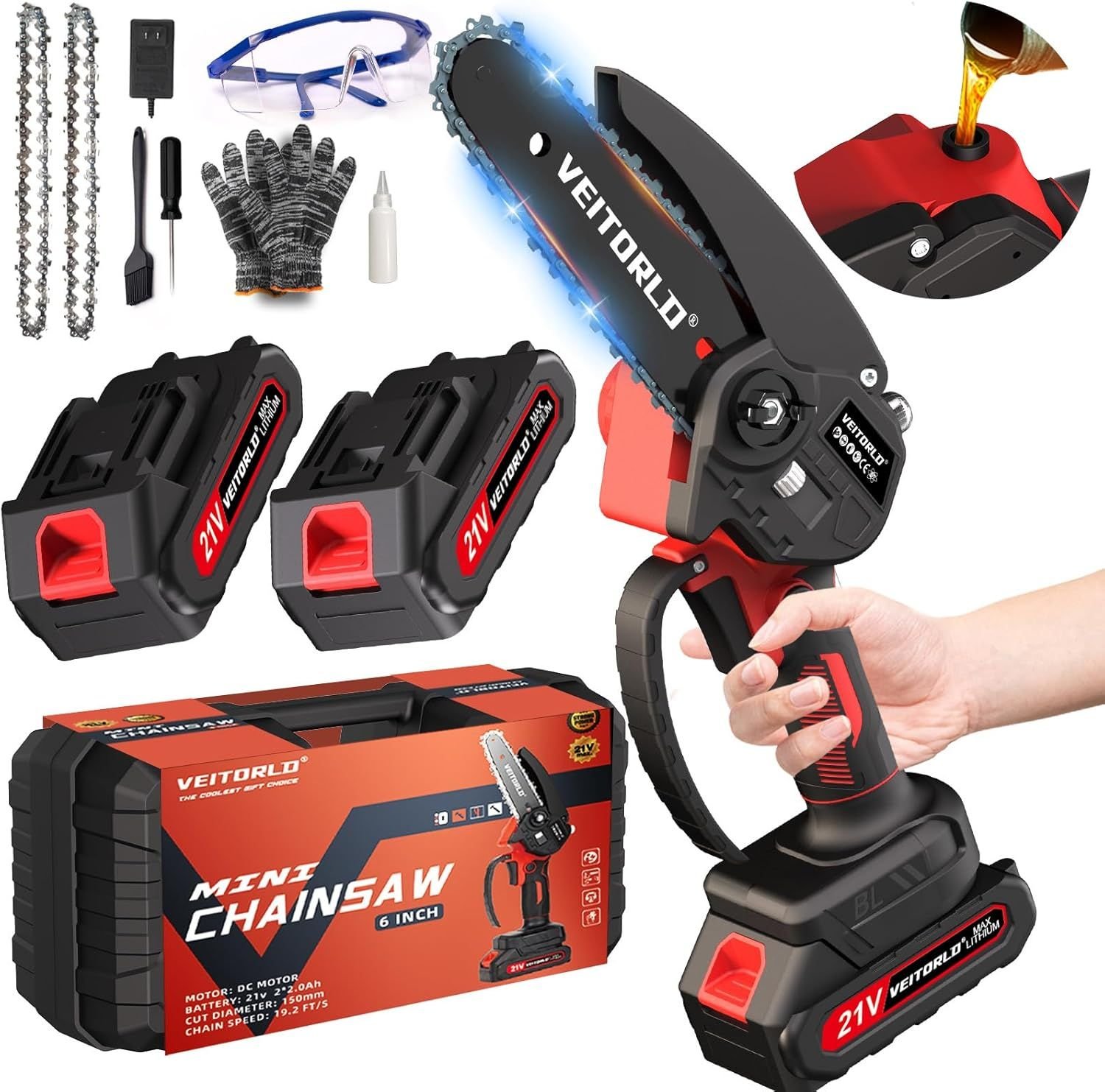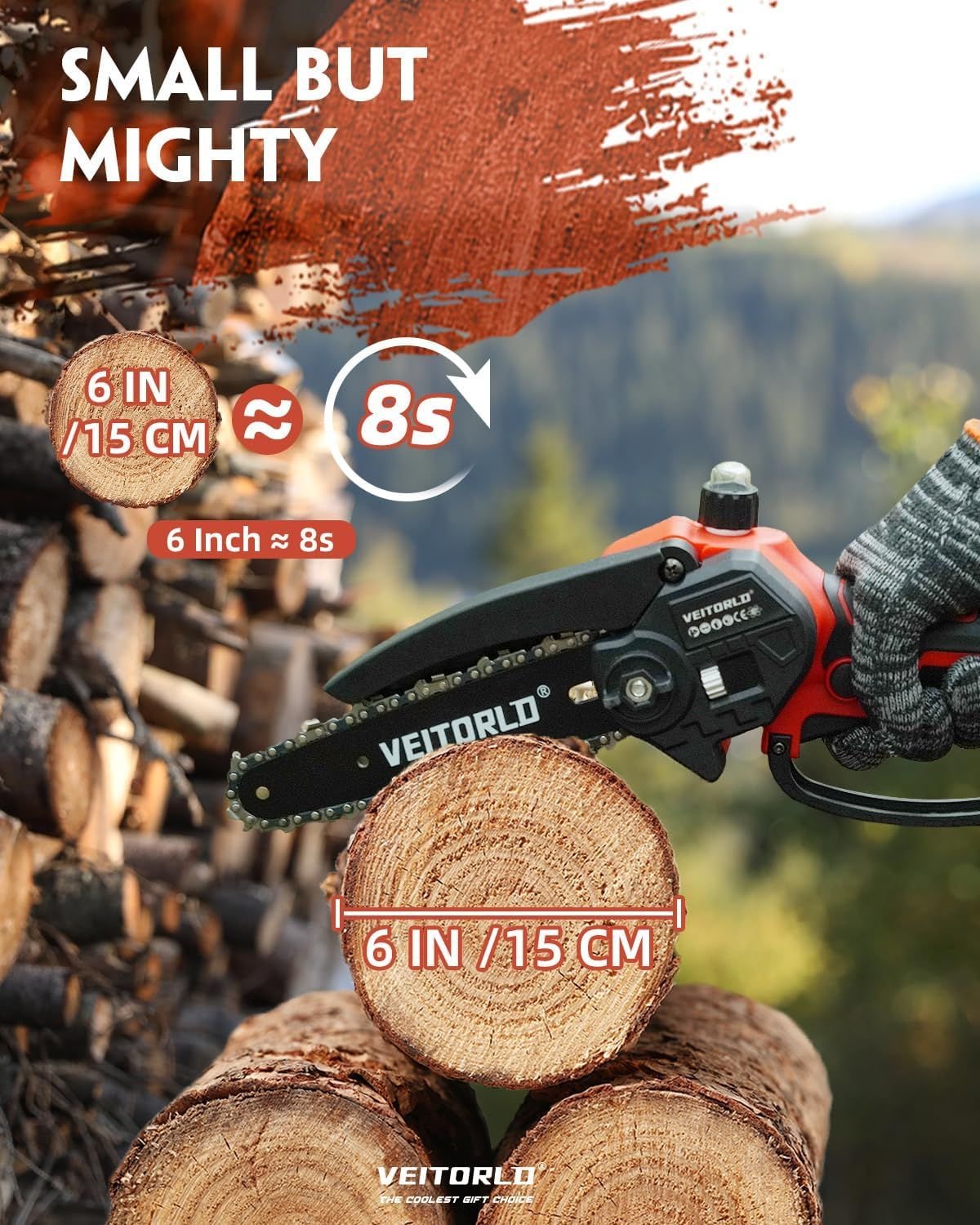 Home > Veitorld Mini Chainsaw, 6-Inch Electric Chainsaw Cordless, Portable Handheld Battery Chain Saw for Wood Tree Trimming, Branches, Courtyard