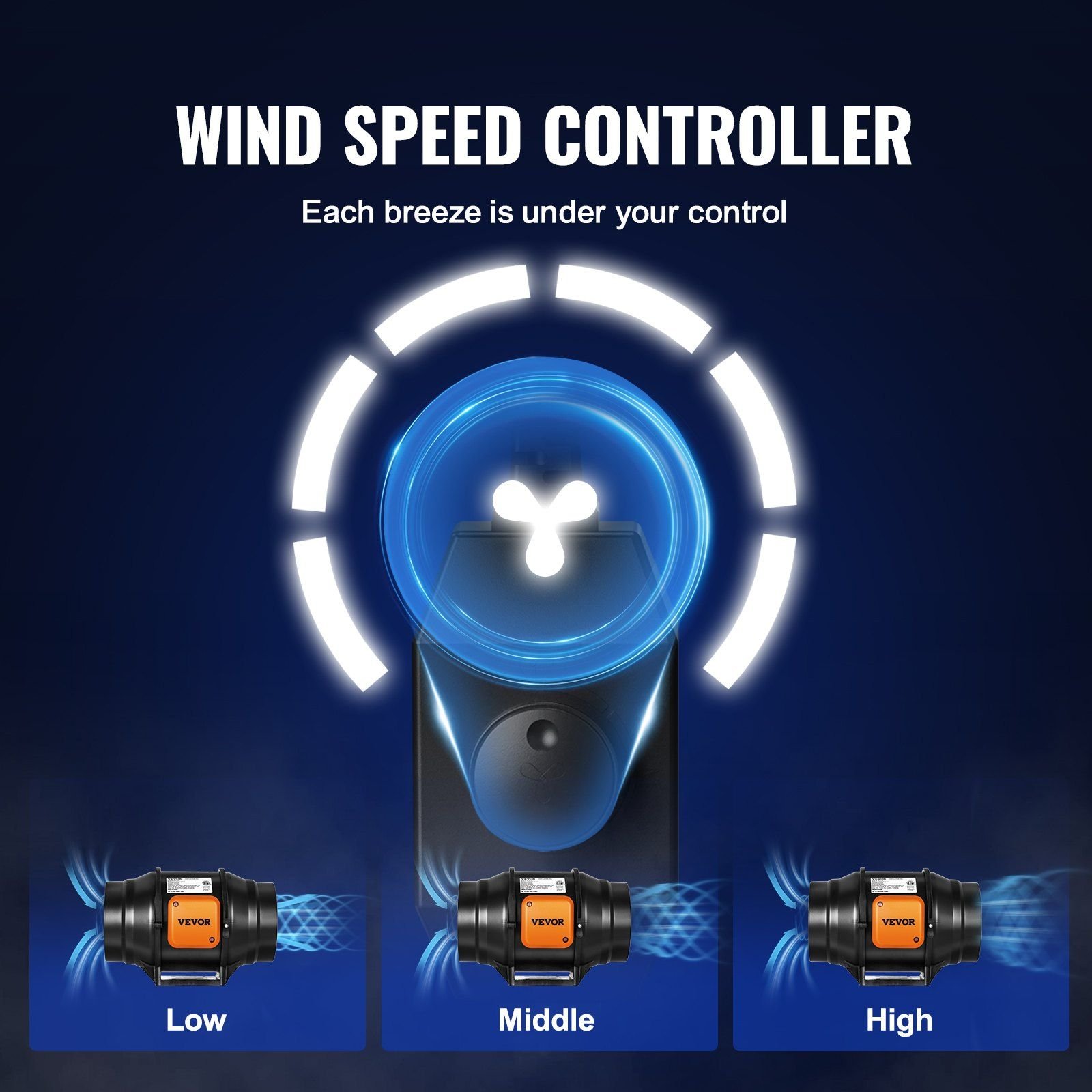 VEVOR 6 Inch Inline Duct Fan HVAC Exhaust Blower Kit AC Variable Speed Control