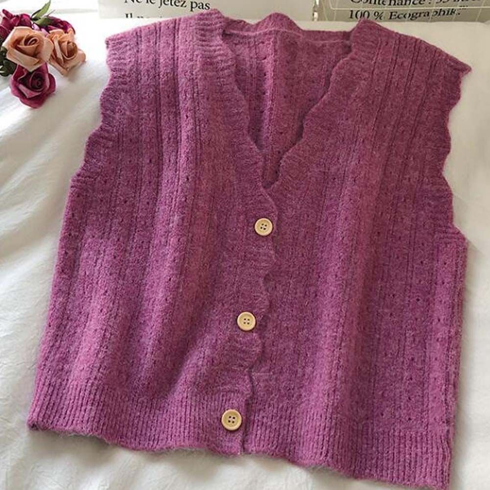 Women's Small Size Autumn Wavy Trim V-Neck Knit Vest Short Sleeveless Vest Coat Tank Top; Purple Women's Small Size Autumn Wavy Trim V-Neck Knit Vest Short Sleeveless Vest Coat Tank Top; Purple